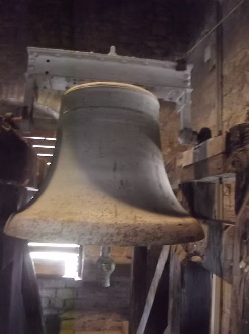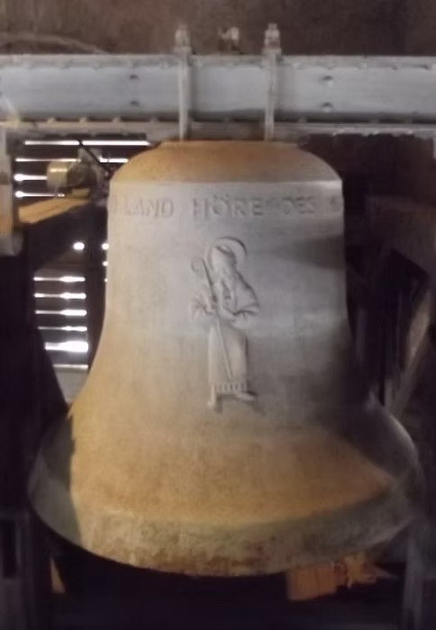 Links ist die Glocke 1 zu sehen, es ist die große Glocke. Oben umlaufend steht der